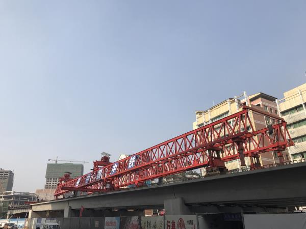 (沱江二桥北岸高架桥最后一跨箱梁架设)