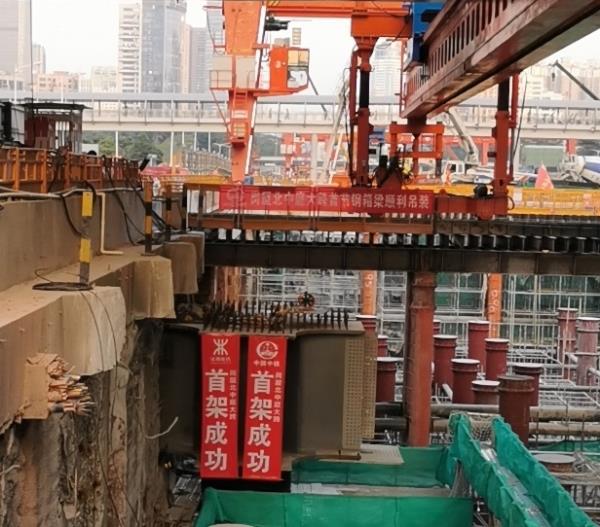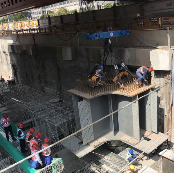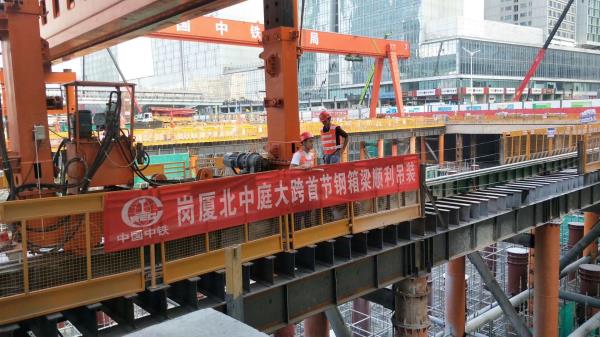 2019年11月20日上午11:30分左右,我公司深圳岗厦北项目第一节2米梁柱节点顺利用DJ180架桥机安装到位,为后面的中庭大跨钢梁安装揭开了施工序幕。岗厦北项目中庭大跨钢梁共划分为294个节段,其中2m梁柱节点16个,其中1.6m梁柱节点10个,型钢梁梁柱节点20个,钢梁248个节段。其中最重节段为2米梁柱节点,重60.1吨,最长节段13.95米,重47.95吨,最短节段为1.6米,重3.5吨。公司岗厦北全体参战员工在施工过程中克服了场地狭窄,交叉重叠施工干扰大,施工条件复杂等困难,合理配置资源,24小时昼夜施工,精心组织,按时兑现了首架节点目标.