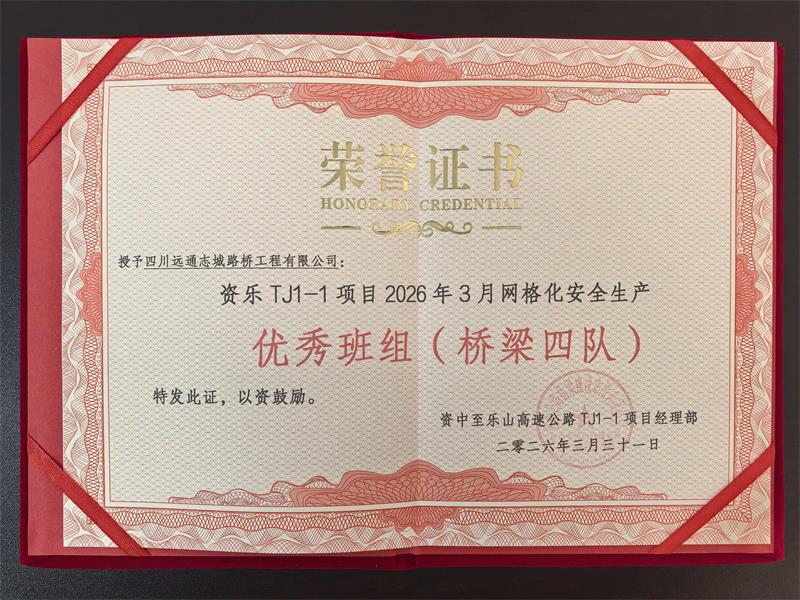 荣誉证书 2026年3月,我司资乐项目施工班组凭借扎实的安全管理功底、在施工期间零安全事故的优秀成绩,成功斩获“安全生产优秀班组”荣誉称号。这一奖项不仅是对我项目班组日常安全管理工作的高度...
