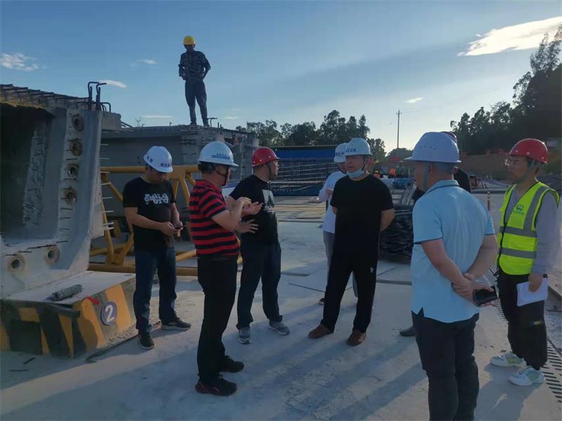 3月22日,海南环岛旅游公路项目(业主)领导携各部门一行到项目预制梁场,对现场安全、质量、进度进行视察指导。在施工现场,业主领导一行在我司项目负责人的陪同下详细查看了梁场平面图、钢筋绑扎、模板调试、T梁浇筑、养护、张拉等工艺流程,在听取了我司项目负责人关于当前施工生产进度、节点工期、人员机械配备等方面的汇报后,又仔细询问了目前梁场施工安全防范措施到位情况。强调钢筋绑扎、T梁浇筑、预应力张拉和起移梁...