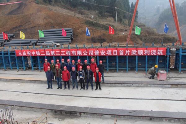 贵州省普安县东城区旅游快速通道30T梁首架成功 我公司普安项目位于贵州省普安县江西坡镇山间,是与中铁二局三公司的首次合作。我公司承担该项目9座大桥共计600余片30米T梁的预制、架设、及桥面施工任务。在中铁二局三公司贵州普安项目部于2018年4月13召开了半幅通大战动员大会后,我司普安梁场项目部工人立即行动,克服云贵高原山区多雨,昼夜温差大等自然因素,采取有力措施,精心组织、加班加点,于4月16...