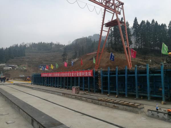 2017年12月26日下午5:30,鞭炮声响彻在贵州省普安县江西坡镇山间,由我公司承建的贵州省普安县东城区旅游快速通道首片30米T梁成功浇筑,标志着该项目正式进入T 梁施工阶段。