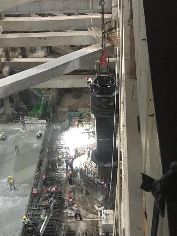 深圳岗厦北大跨安装项目第一根60吨钢管柱成功安装